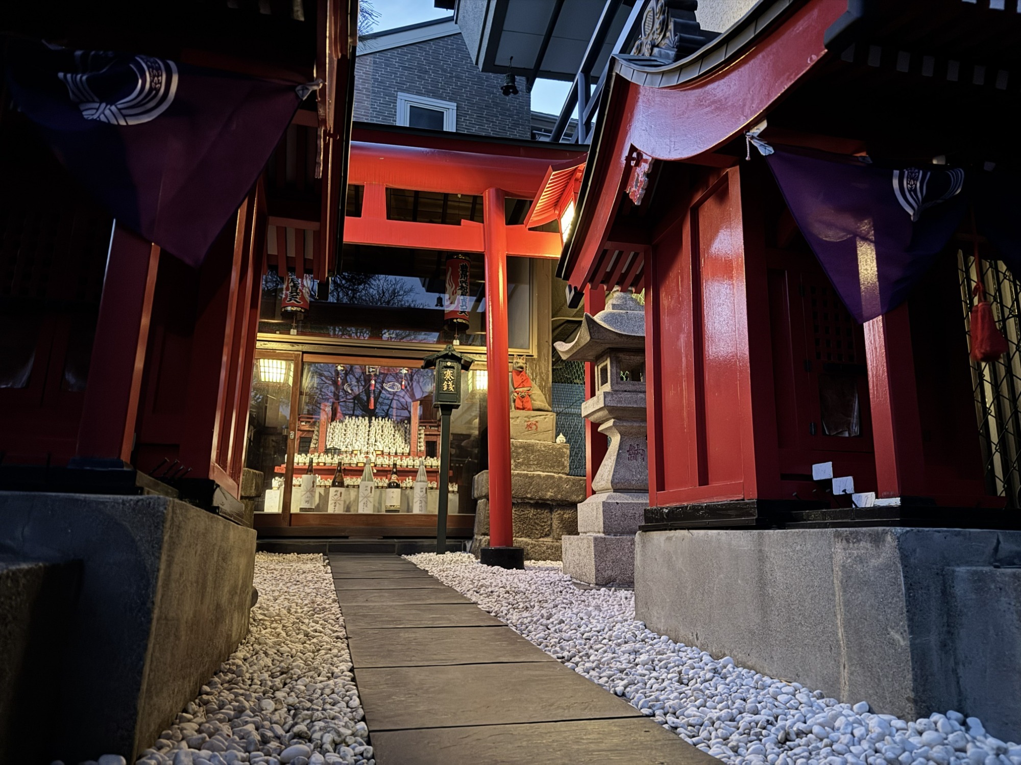 お稲荷様は、三重の塔と准胝観音様の脇を抜けるといらっしゃいます
